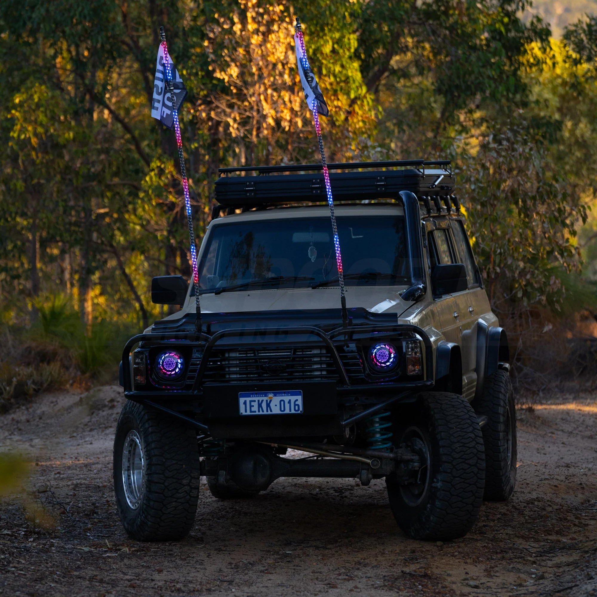 Whether it's a Sand Flag during the day or Mood Lighting at night our Bushdoof LED Chasing Whips willĀ make you standĀ out on the tracks!